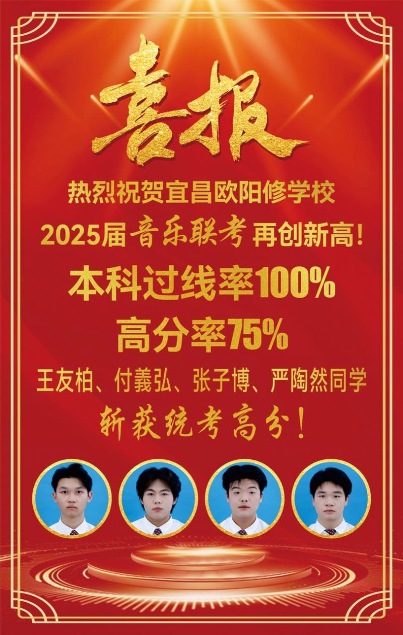 喜 報 | 熱烈祝賀宜昌歐陽修學校2025屆音樂聯(lián)考再創(chuàng)新高!