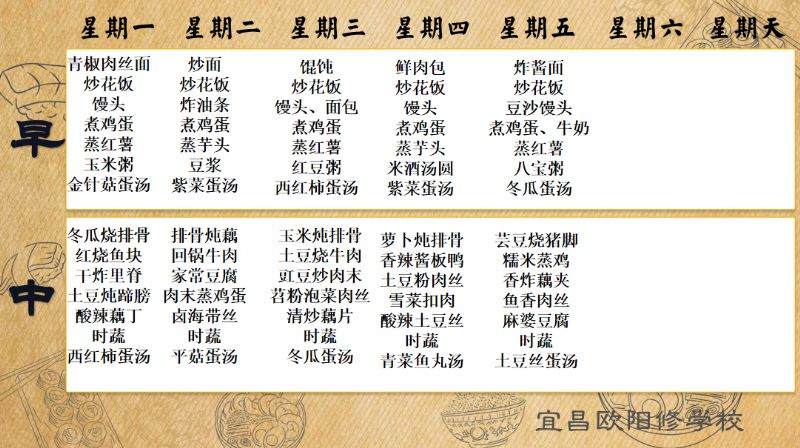 宜昌歐陽修學(xué)校每周食譜(10月13日-10月19日)
