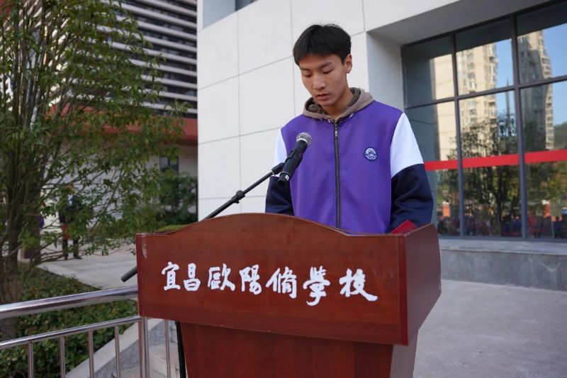 運(yùn)動(dòng)員代表303班曾昱文神情堅(jiān)毅地發(fā)表感言并宣誓,承諾將嚴(yán)格遵守比賽規(guī)則,尊重對手、尊重裁判、尊重觀眾,以飽滿的熱情、昂揚(yáng)的斗志全力以赴,賽出風(fēng)格、賽出水平,展現(xiàn)歐陽修學(xué)子的良好風(fēng)貌。