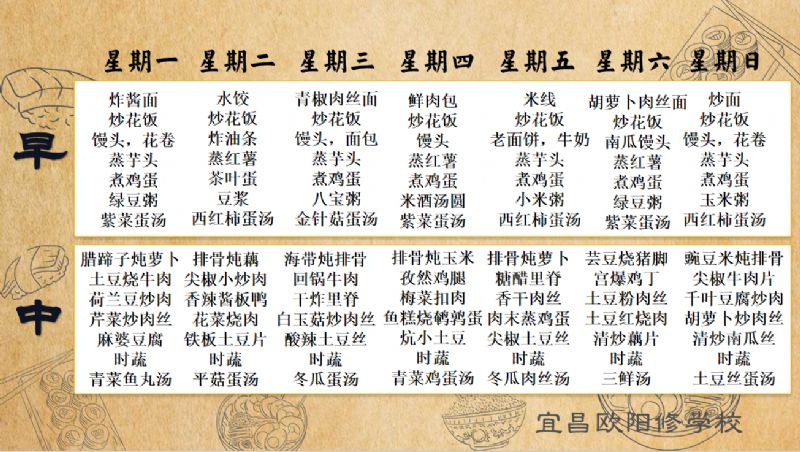 宜昌歐陽(yáng)修學(xué)校每周食譜(12月8日-12月14日)