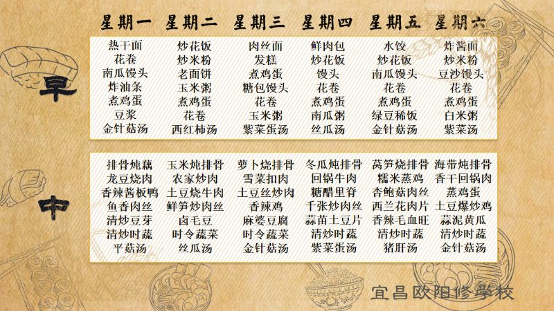 宜昌歐陽(yáng)修學(xué)校每周食譜(5月27日至6月2日)