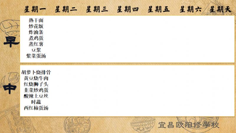宜昌歐陽修學校每周食譜(9月29日-10月6日)