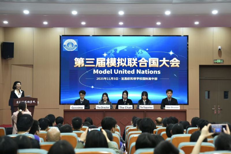 該校作為宜昌市唯一的雅思示范中學(xué),始終以"學(xué)生自主發(fā)展"為核心,通過模聯(lián)這類高品質(zhì)國(guó)際活動(dòng),拓寬學(xué)生國(guó)際視野,鍛煉批判性思維與跨文化交際能力。正如"滯者導(dǎo)之使達(dá),蒙者開之使明"的教育理念,模聯(lián)大會(huì)為學(xué)子們搭建了知行合一的實(shí)踐平臺(tái),讓他們?cè)诮巧缪葜刑嵘I(lǐng)導(dǎo)力,在觀點(diǎn)碰撞中啟迪智慧。